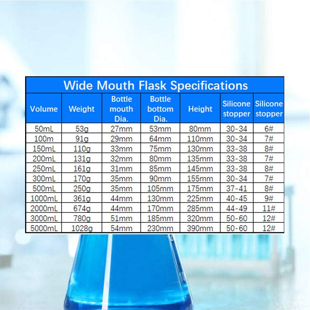 • Sizes: Available in multiple sizes ranging from 50 mL to 5000 mL to meet various experimental needs.