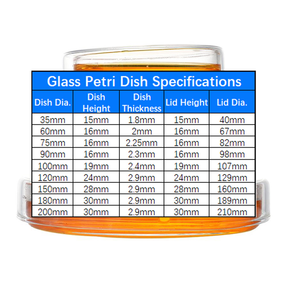 A glass petri dish is a shallow, cylindrical, lidded dish used in laboratories for various applications, primarily in the fields of microbiology, cell culture, and other biological sciences. It provides a sterile, transparent environment for the growth and observation of microorganisms and cell cultures.