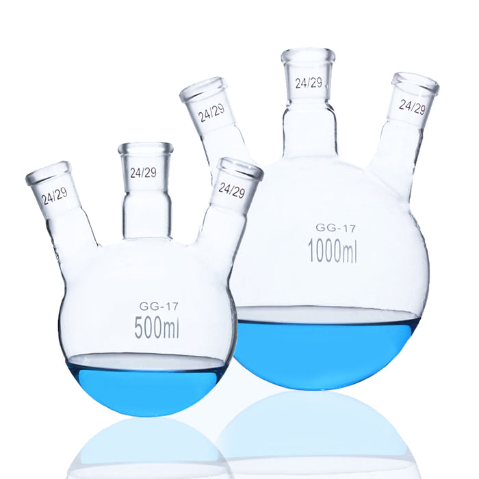 Neck Sizes: The necks are designed to accommodate standard taper ground glass joints, allowing for secure connections with stoppers, condensers, funnels, or other apparatus.